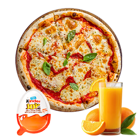 1 Pizza base + 1 Ingrédient au choix + 1 Jus d'orange + 1 Kinder.